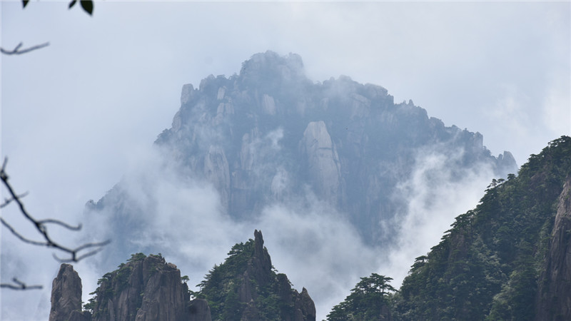 黄山位于安徽省南部黄山市境内,有72峰,主峰莲花峰海拔1864米,与光明顶、天都峰并称三大黄山主峰,为36大峰之一。黄山是安徽旅游的标志,是中国十大风景名胜唯一的山岳风光。在黄山的诸多景观之中,黄山云是最为神秘莫测的大自然杰作。