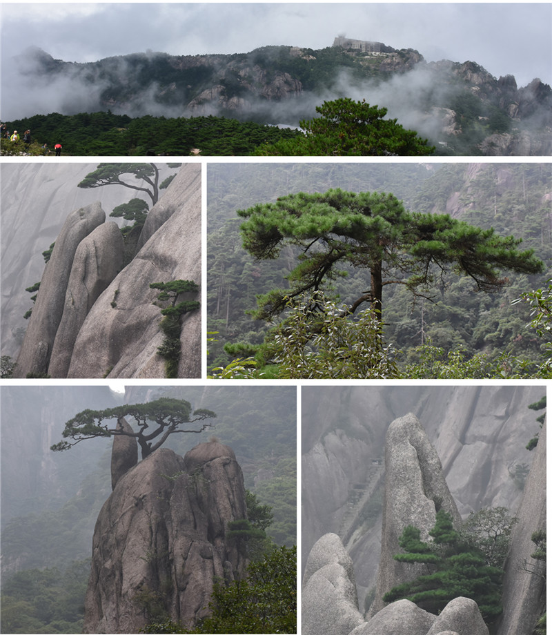 经历3个半小时攀爬路程,终于到达迎客松。虽然15公里的山路蜿蜒崎岖,使得攀爬异常的艰辛,眼前景物却让疲惫的众人感到无比的欣慰。山顶上蓝天白云,触手可及,座座雄峰,尽收眼底。这时才真正体会到杜甫诗中“会当凌绝顶,一览众山小”之情。