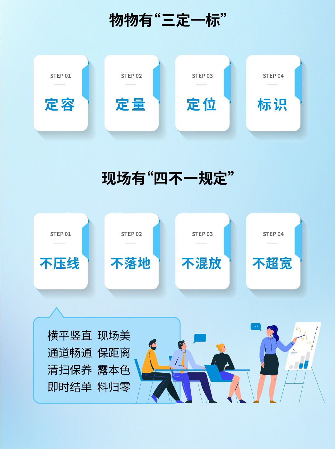 一是强化管理实施标准和考评细则管理,制定详实的精益6S&TWI现场改善管理目视化手册,包括方案、检查标准、工作步骤、工作重点、推行要领、激励制度,将管理理念传达到每一位员工,推动企业执行力和员工素养的持续提升;